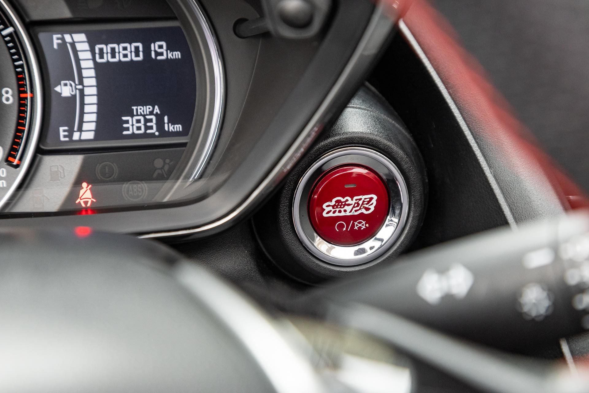 A Mugen start button fires up the action, there is a serial number plate (this one being #332) and carbon-fibre trim pieces including the gear knob atop the six-speed manual. The S660 can also be had with a CVT auto, but that wouldn’t be much fun.