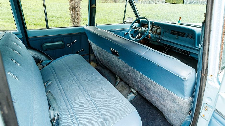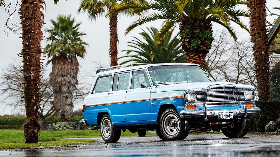 Williams added the Wagoneer to the shed a few years back. It was sitting unloved in nearby Ohaupo, and after some skilful negotiating Williams managed to secure it for just $9500 along with about $8000 worth of spares. Some bits needed rectifying to get a warrant but he reckons he got a good deal. He just wished he’d kept quiet on the price as his Jeep club mates now all know what it’s worth. This has the AMC 360 cubic inch V8 and the Turbo 400 transmission, the last year the Wagoneer was offered with this combination. From the factory it had all the mod cons, AC, cruise control, intermittent wipers, some of which still work. Another thing he needs to sort is the 4×4 system which at some point in its life has been converted to a rear-drive set up with freewheeling hubs up front. As he says, he’ll get to it. Apart from that, it’s largely original, having covered only 40,000miles. He says it’s almost as good as his current Grand Cherokee in terms of ride comfort, cruising well for something of its vintage.