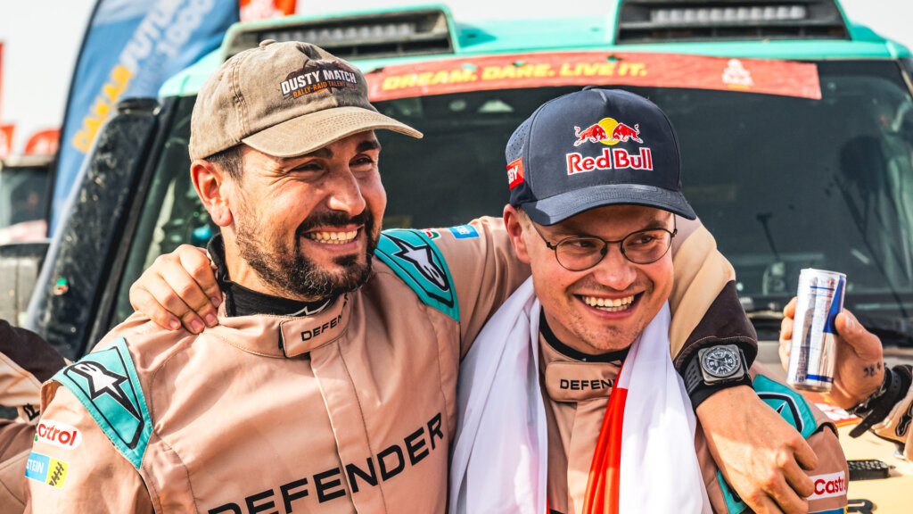 Land Rover drivers Rokas Baciuška and Oriol Vidal piloted the Defender Dakar D7X-R to success, which is based on the range-topping Octa variant.
