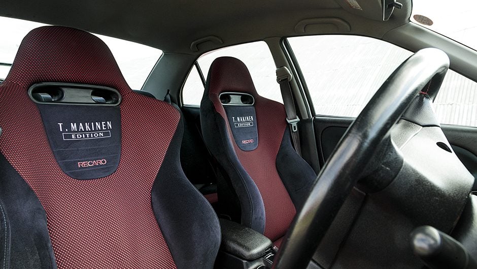 Looks wise they gave it a unique bumper to improve aeros and the 17s mimicked the design of the works car. Available in blue, white, silver and black, the Passion Red cars alone received Ralliart decals, making them the fastest of the 6.5s. Inside the Recaros were trimmed in red and suede with the Tommi Makinen logo on the back rest and the Momo steering wheel and gear knob gained red-stitched leather.