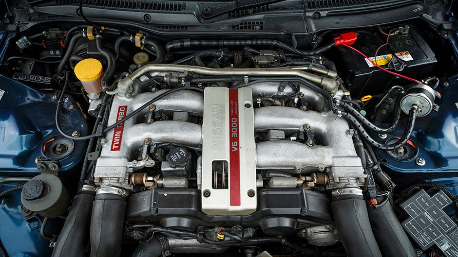 Its V6 was a development of the engine before it, but the Z32’s VG30DE was a more sophisticated unit. The 60-degree V6 still had an iron block and alloy heads but to facilitate revs, Nissan added double overhead cams and four valves per. Low-end tractability was aided by variable valve timing to reduce overlap at low engine speeds. A direct ignition system had a coil sited on every spark plug. In naturally aspirated guise, it was good for 169kW and 273Nm. With a Garret turbo bolted to the cast iron exhaust manifold on each side of the engine, and with a pair of intercoolers, the torque output blossomed to 388Nm at 3600rpm, though ultimate power was stymied by the Japanese car makers’ gentleman’s agreement to cap output at 206kW.