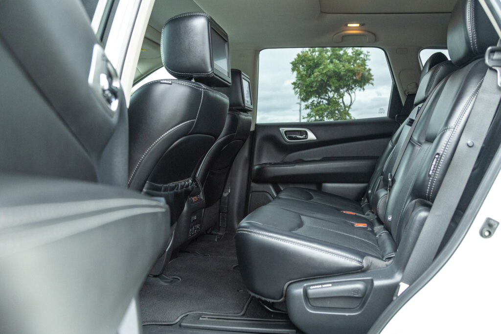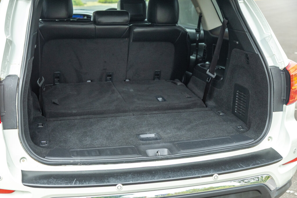 In New Zealand, the Ti sat at the top of the tree. It came loaded with features that shame many modern entry-level cars: 20-inch alloys, a panoramic “glass top” sunroof, and heated/ventilated front seats. A key feature for families is the rear entertainment system with dual screens in the headrests and wireless headphones. Crucially, the Ti also gained the full suite of “Intelligent Mobility” safety tech, including emergency braking and blind-spot intervention.