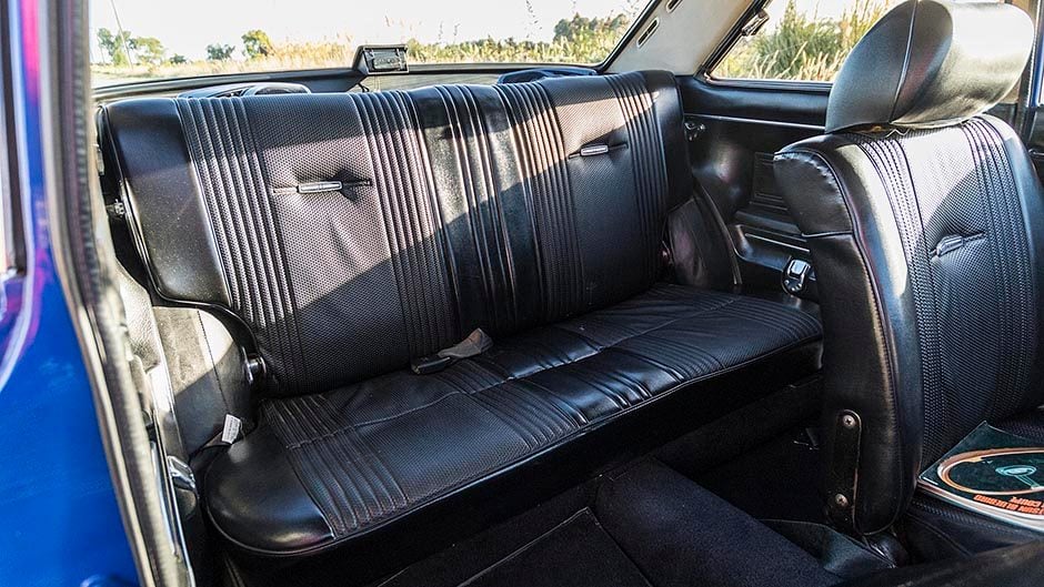 Externally that’s not the only coupe-specific feature. Faux vents adorn the fluted bonnet, while up front the coupe features a rocking-horse-poop grille which integrates a pair of foglights. International interest in the P510 ensures the price on these parts is constantly on the rise. Optional ‘five-stud’ stainless hubcaps clip to factory steel 13-inch wheels, while a BRE-style ‘spook’ front spoiler finishes the front end with a period flourish.
