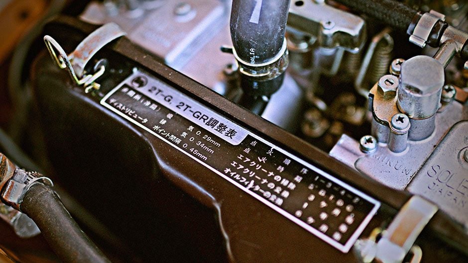 Outwardly, the wide rocker cover evoked the Alfa Romeo engine visuals of a similar period, no doubt assisted by the pair of 40mm Mikuni-Solex side-draft carburettors slung from the driver’s side. The 2T-G pumped out a handy 115hp in its initial form, though later iterations complying with emissions regulations would suffer. When plonked between the chassis rails of the TE27 Corolla and TA22 Celica GT, the early 2T-Gs earned a typically Toyota reputation as revvy, reliable powerplants.