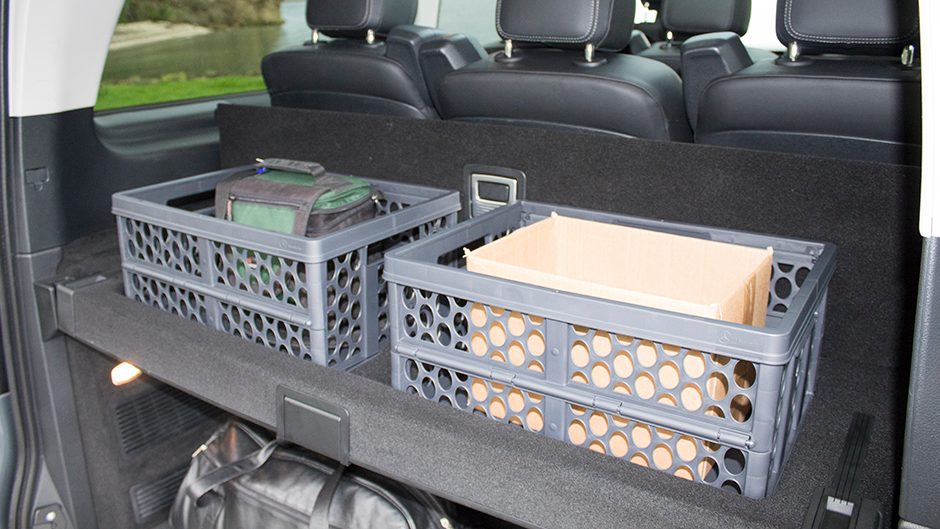 The V 250 d offers some clever features such as the rear parcel shelf with integrated shopping crates, stowage nets on the driver and front passenger seat backs, a seat rail system with quick release locks, and a stowage compartment in the centre console that contains cup holders that may be hidden by a retractable cover.