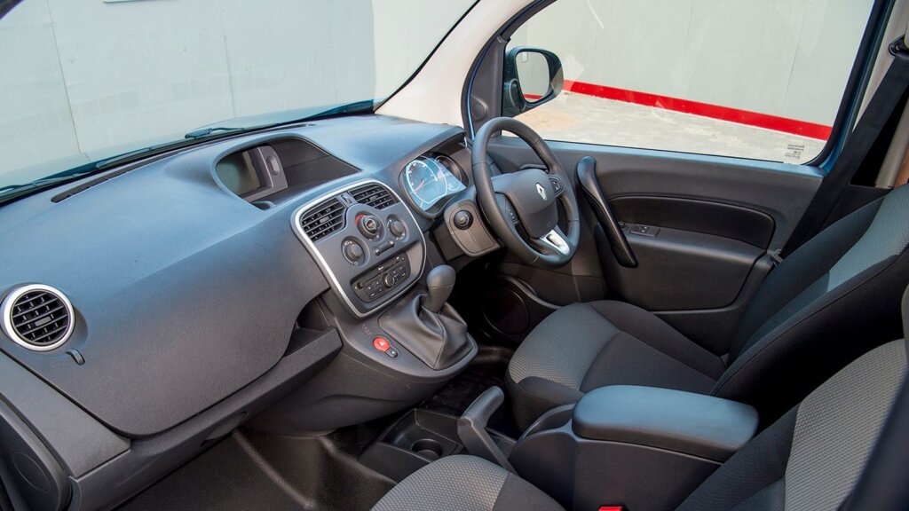 Payload for the Kangoo Z.E Maxi is rated at 850kg, there is a non slip rubber floor available for the cargo bay as well as 14 cargo tie down points.